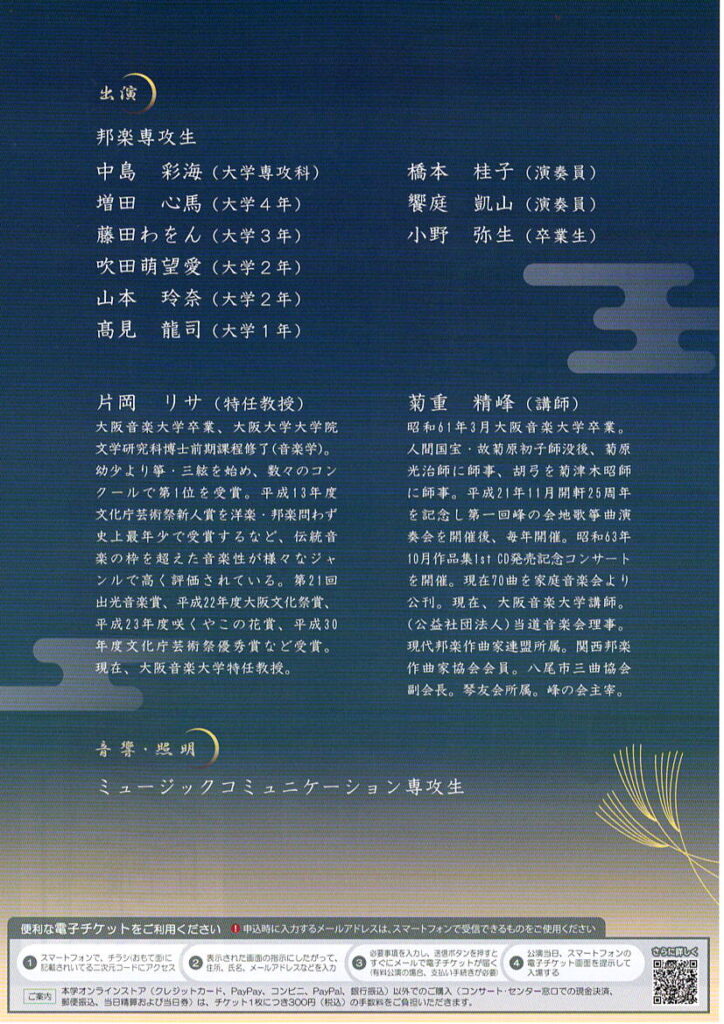 出 演|大阪音楽大学邦楽専攻生、片岡リサ、菊重精峰、橋本桂子、饗庭凱山、小野弥生